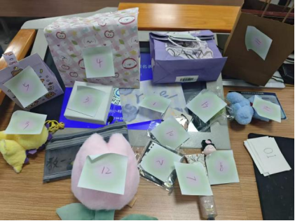 活动前期,同学们精心准备了承载个人回忆与特殊意义的小物件,并认真书写便签,记录物件背后的故事、感动与期许。大家将承载心意的物品逐一投入盲盒,在仪式感中传递真诚、善意与美好祝福。